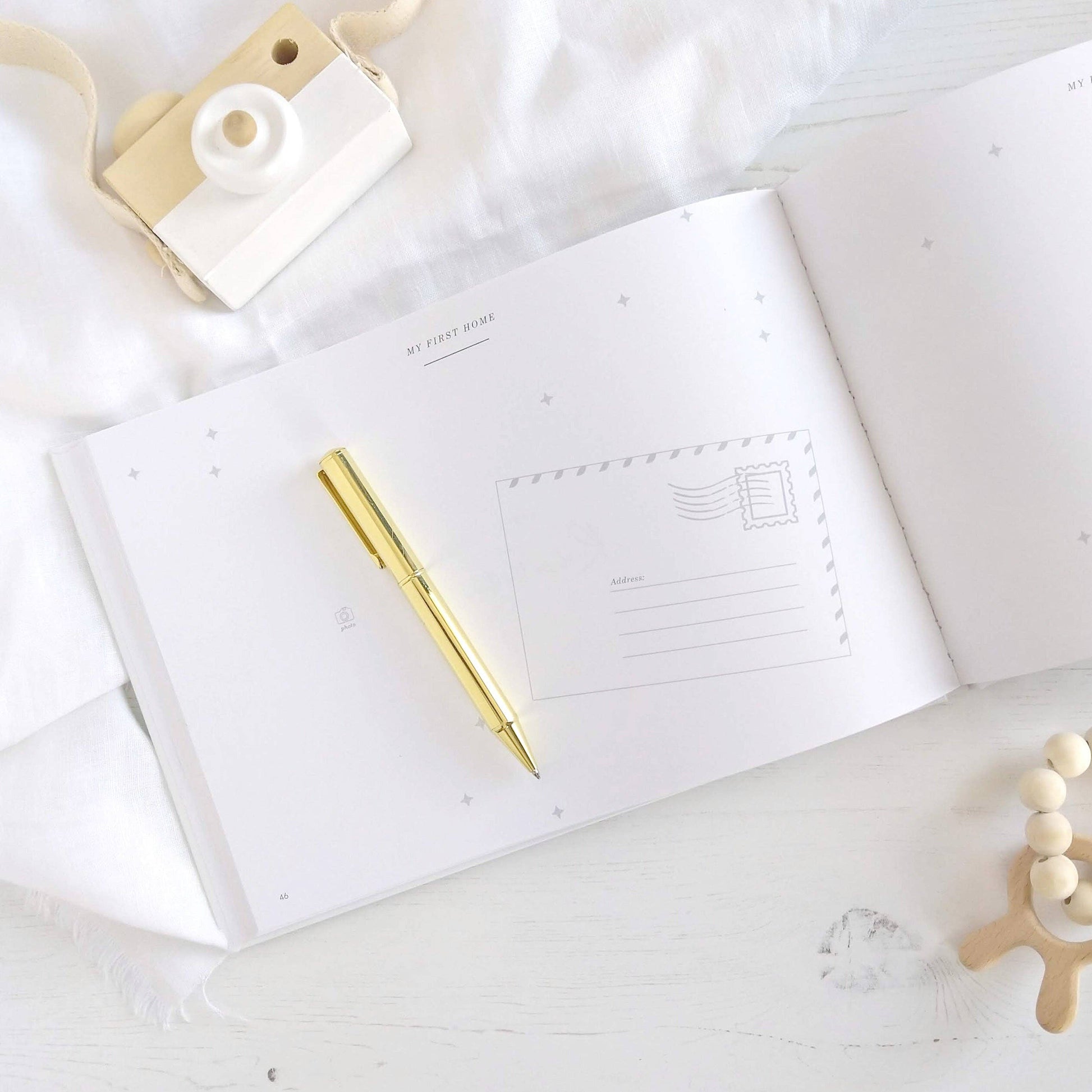 It's the perfect gift for an expecting or new parent, and its gender neutral pages make it suitable for both baby girls and baby boys. There is plenty of space in our baby memory book to write down your baby's first words, steps and tantrums, and enough prompted pages for you not to be stuck for ideas for things to write, whilst still leaving enough room for you to personalise it and add your own content.