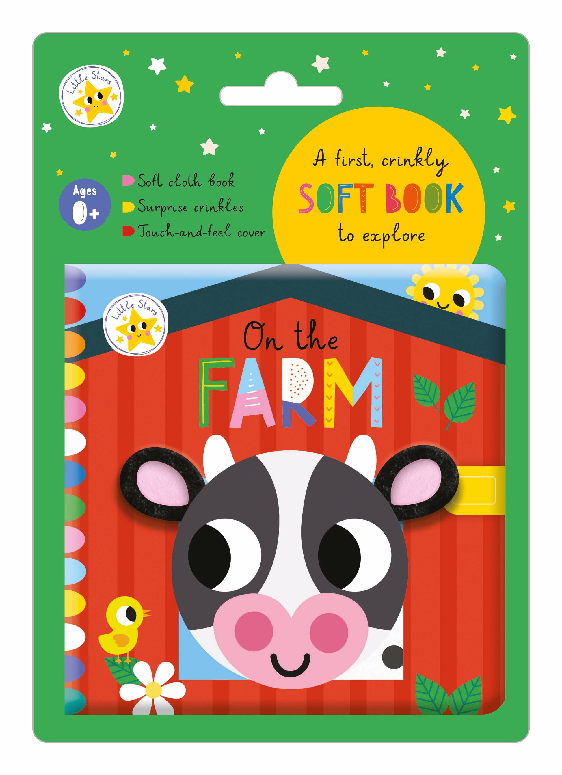 Have fun on the farm in this super-sweet cloth book. Little ones will love squeezing the soft pages as they meet and make the noises with the farmyard animals. With surprise crinkles to stimulate hearing and soft ears on the cover to encourage sensory play, this colourful book is perfect for adults and babies to share together.