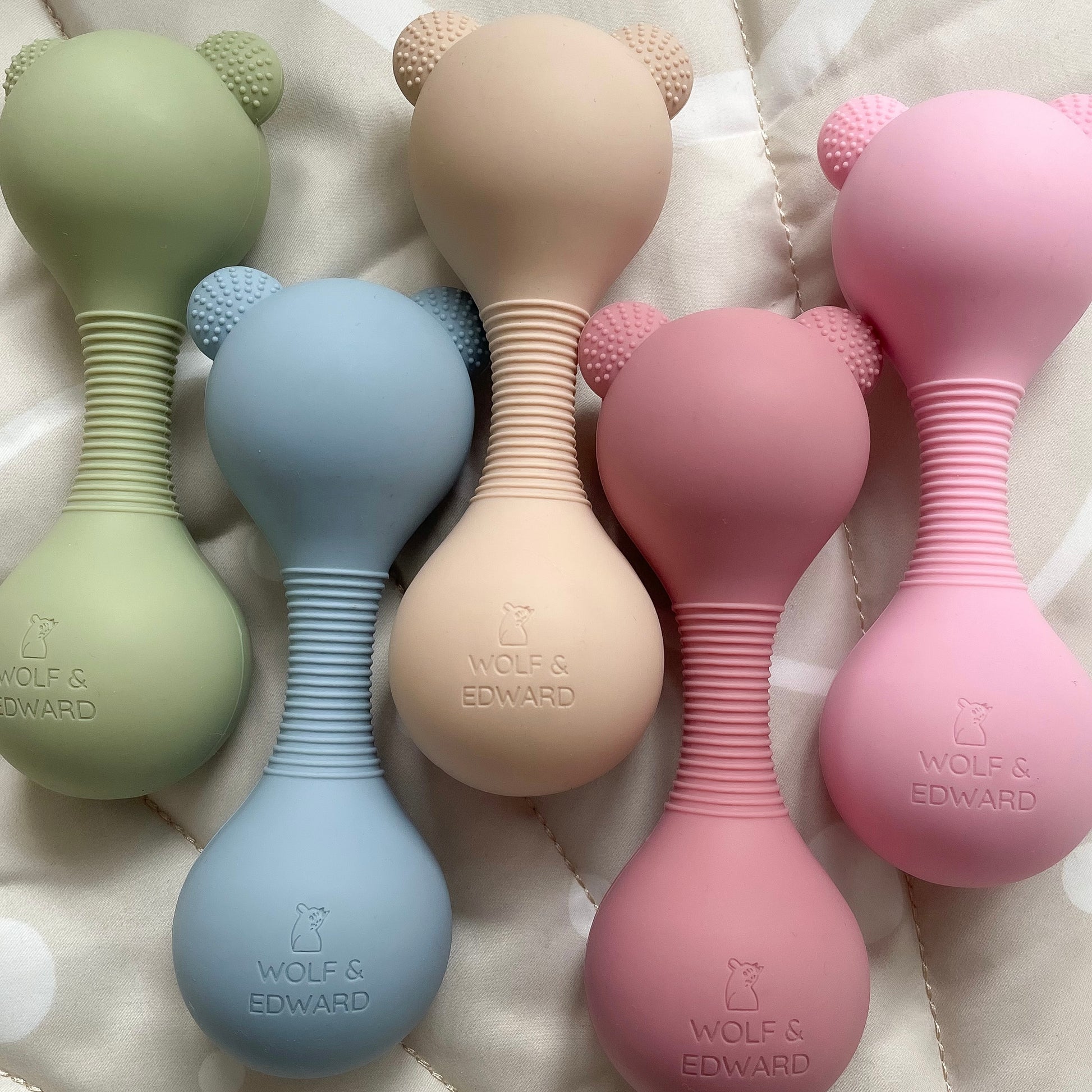 Meet your baby’s new best friend! Our Wolf & Edward Silicone Bear Rattle combines adorable design with safe, sensory fun - a modern twist on a timeless baby essential. Crafted from premium, food-grade silicone, this rattle is gentle on tender gums and easy for tiny hands to grasp.